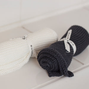 a fabulous wash cloth knitted from organic eco-cotton in a deep charcoal colour.