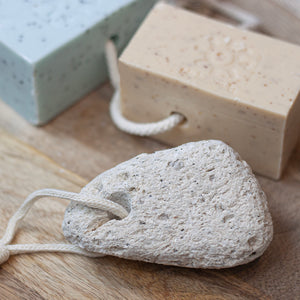 An exfoliating pumice stone from iris hantverk. Pumice is a 100% natural product which comes from volcanic lava. Only use when wet, in the shower or bath or with a foot bath, it is an excellent exfoliant, particularly for dead skin and calluses on the feet and hands.